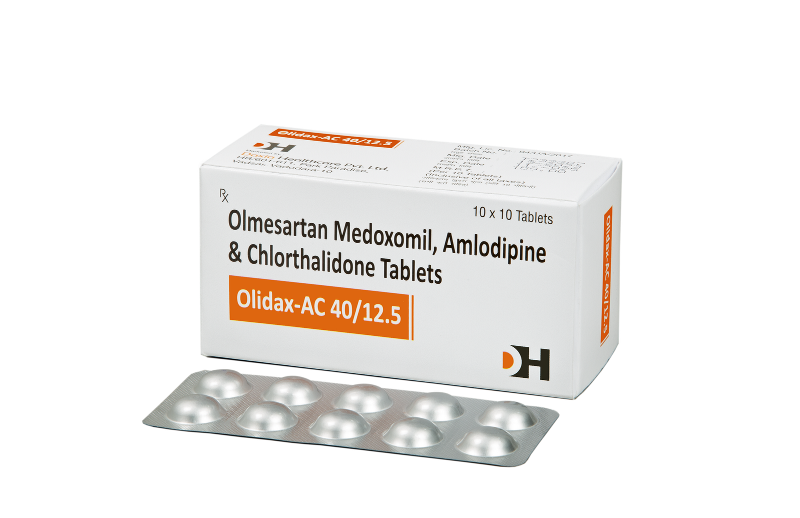 Olmesartan Medoxomil 40 + Amlodipine 5 mg + Chlorthalidone 12.5 mg Tab